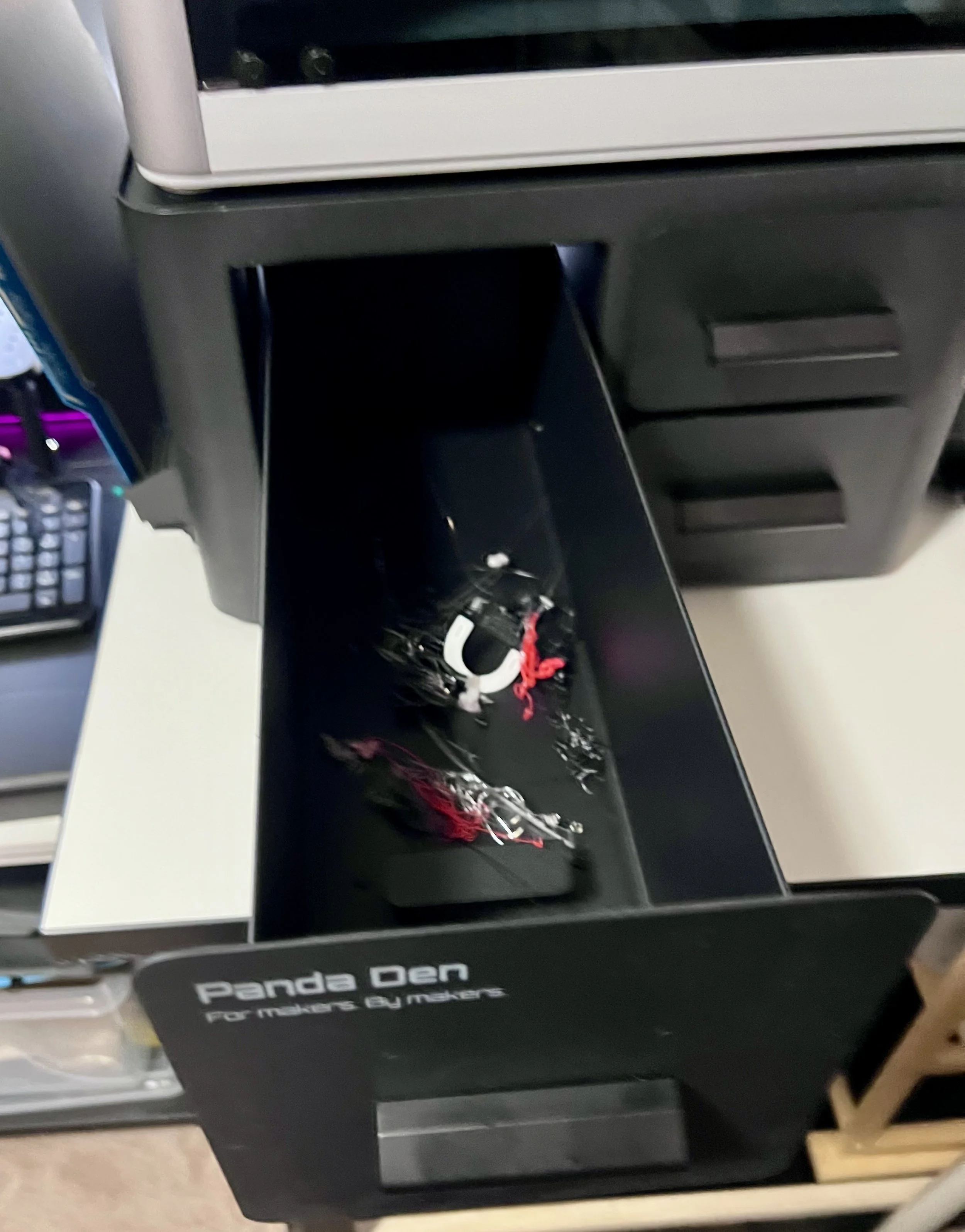 But this is the main feature that drew me to wanting the Panda Den. That is a self-printed chute that takes the “poop” from the X1C and drops it into the Den. It is held on with magnets. No more poop chute clogs (I write hopefully) that stop prints.